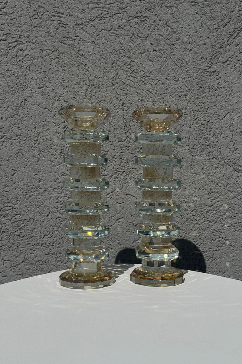 זוג פמוטי קריסטל מהודרים בשילוב זהב