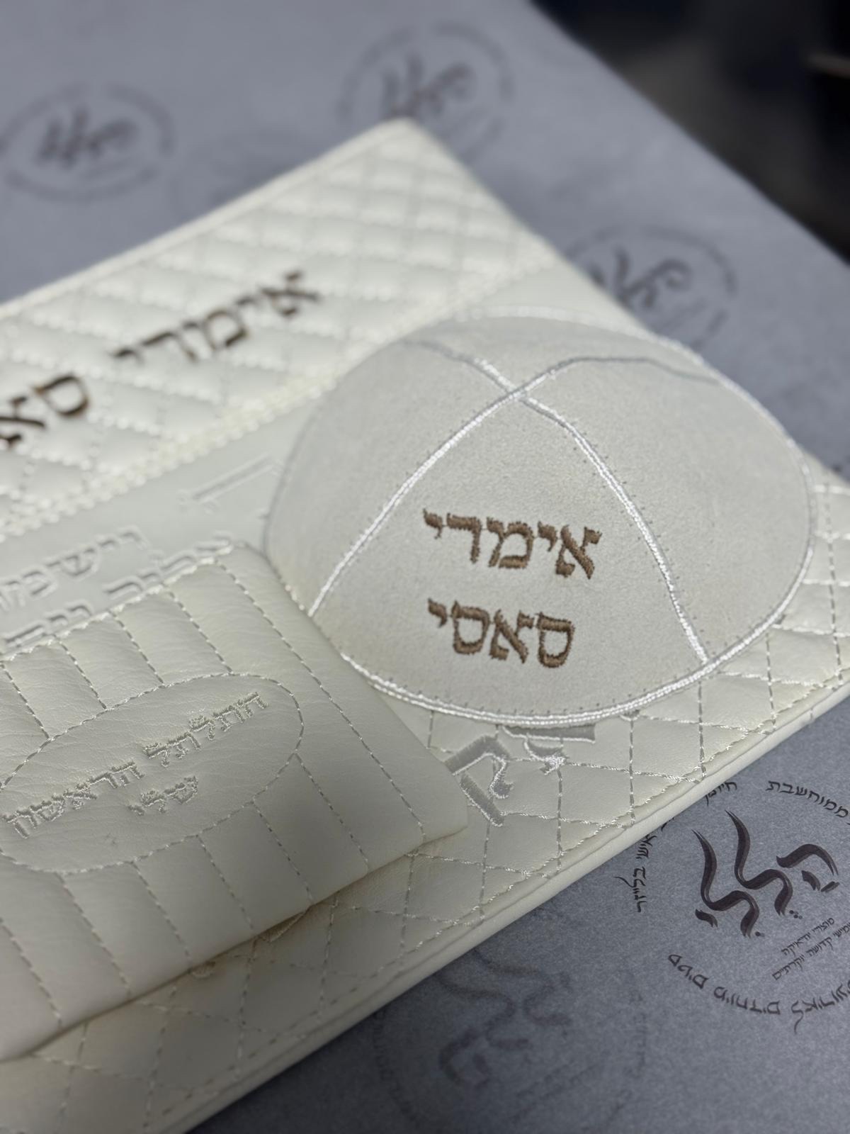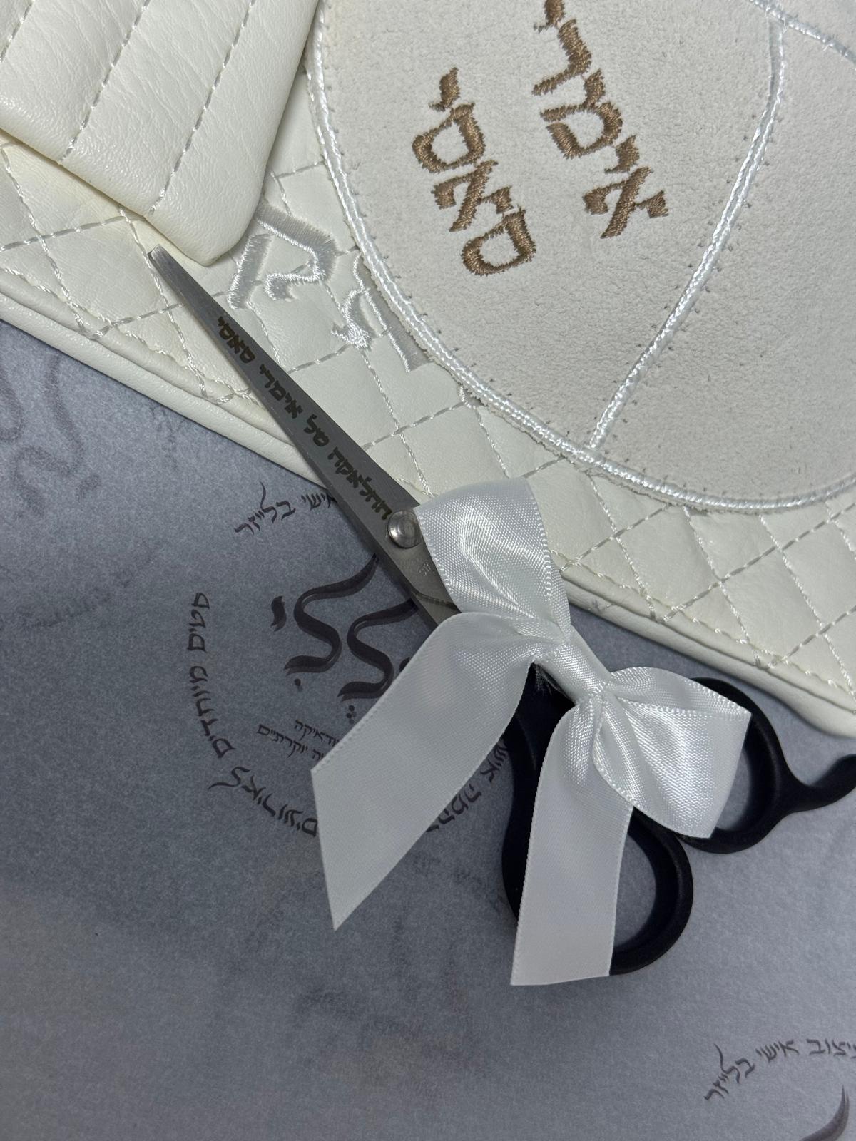 כיסוי טלית כולל רקמה אישית, כיסוי התלתל הראשון שלי, מספריים עם חריטה אישית, טלית חלאקה עם רקמה אישית, כיפה עם רקמה אישית, תהלים עם חריטה