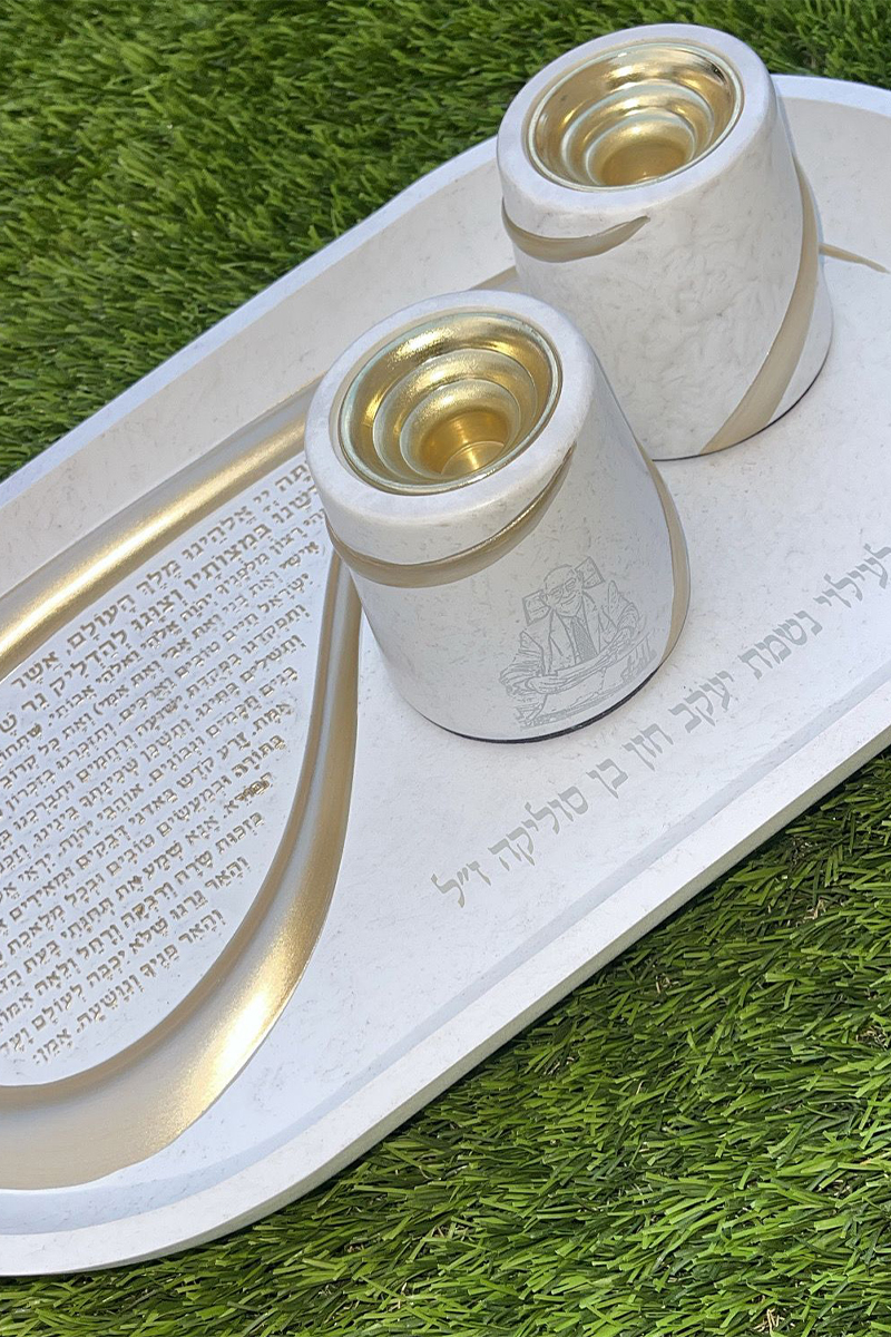 מגש הדלקת נרות ופמוטים כולל משפט ותמונה לבחירה
