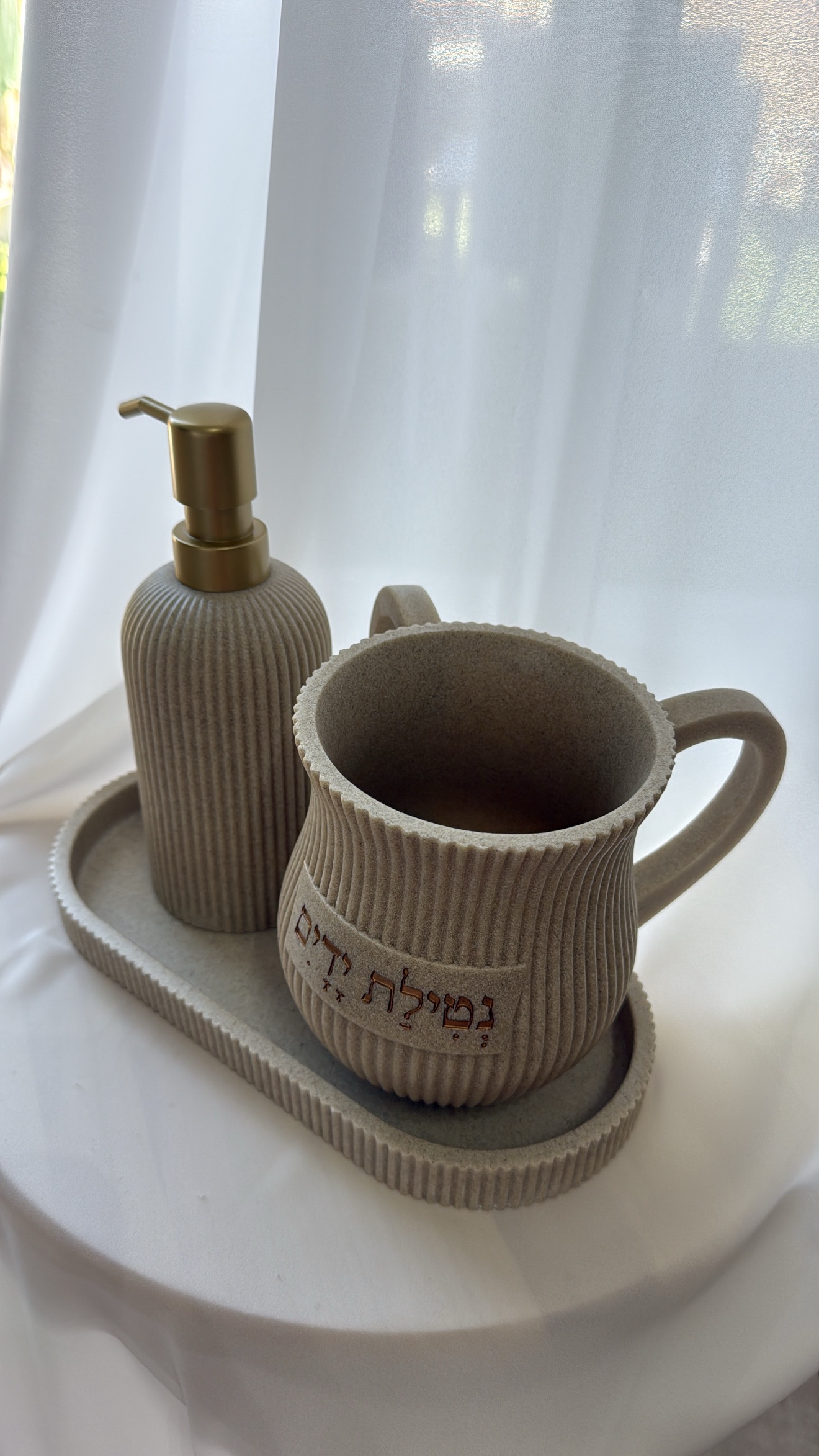 / מעמד סבונייה ונטלה דגם בז׳ שילוב זהב