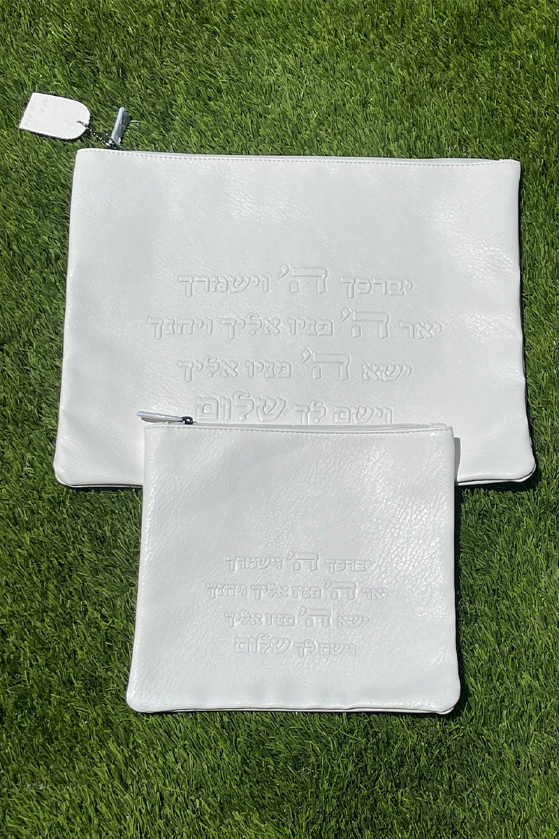/ סט כיסויים טלית ותפילין לבן יברכך ה' וישמרך