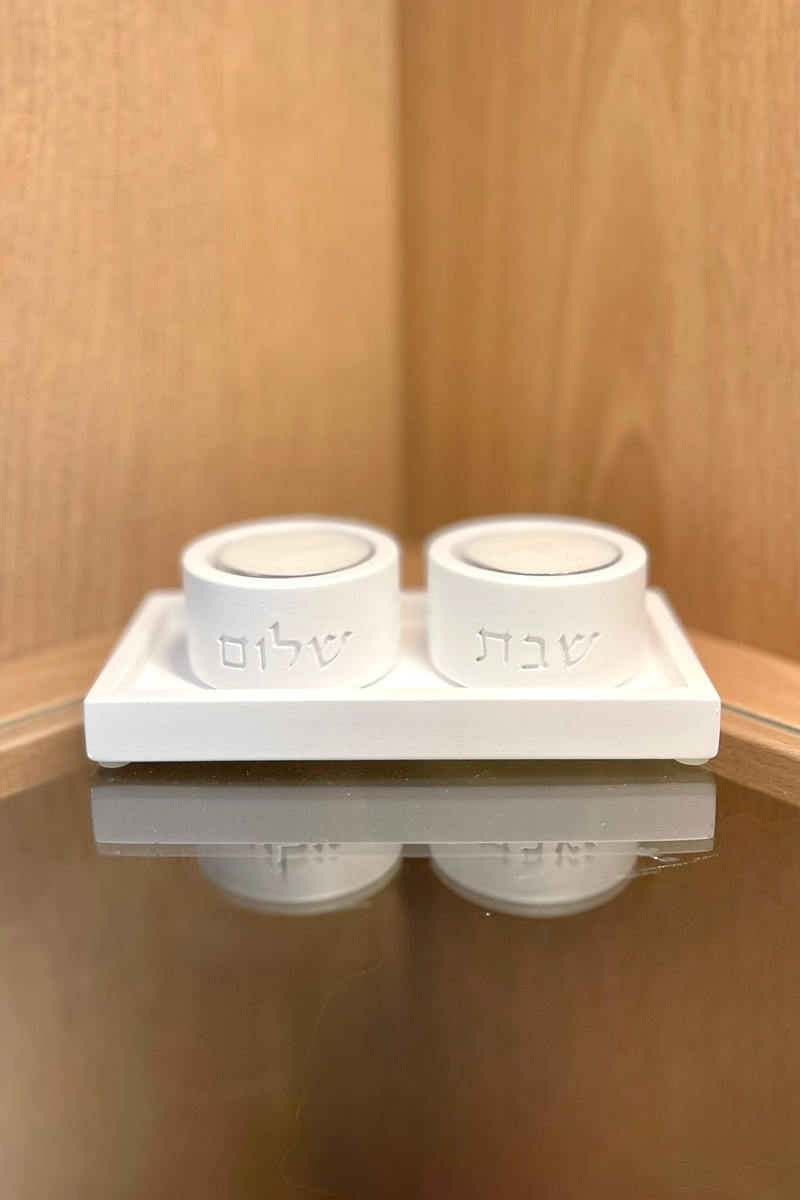 פמוטים קטנים מבטון עם מגש כיתוב לבן